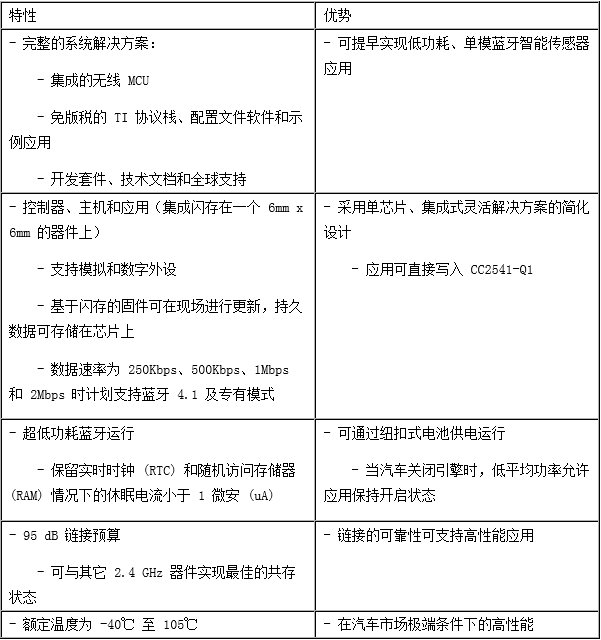 SimpleLink 低能耗藍牙CC2541-Q1 的特性與優勢